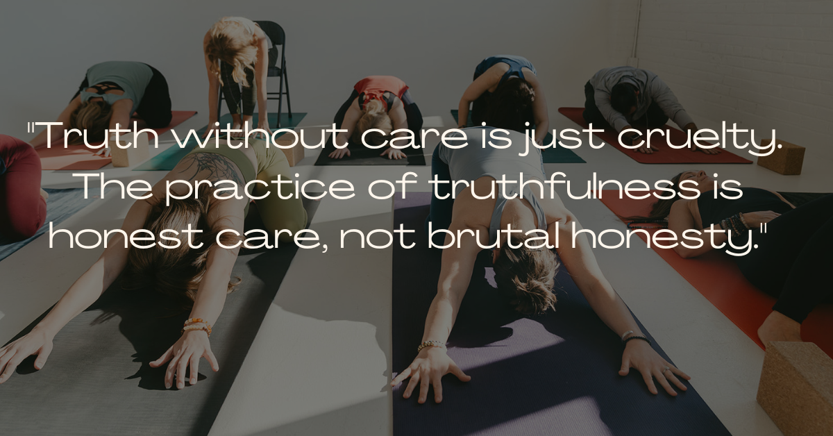The Sutras also offer an important constraint on satya. Patanjali teaches that truthfulness must be held alongside ahimsa, non-violence. Truth without care is just cruelty. The practice is not brutal honesty. It is honest care.